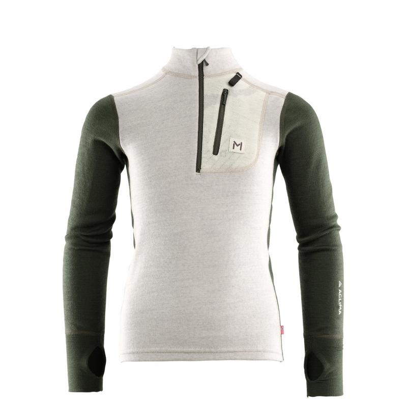 Lars Monsen Femunden Mock neck with zip er en langermet trøye med glidelås i halsen. Glidelåsen gjør det enkelt å slippe ut varm luft og lukke igjen når det blir kjølig, den høye kragen varmer hals og nakke. På brystet er det en lomme med glidelås og oppheng for kompass eller annet turutstyr. Nederst på armene finner du tommelhull som holder genseren på plass, varmer og hindrer kald luft i glippen mellom yttertøy og hansker. Består av Interlock 100% Ull (Merino) og Rib 96% Ull (Merino), 4% Elastan. Lars Monsen Femunden – dette er en serie ullundertøy i merinoull, for ekte friluftsfolk. Denne ullserien er laget med inspirasjon fra Femunden, Norges tredje største innsjø. Lars Monsen har sammen med Aclima utviklet en kolleksjon som er gjennomtenkt, av høy kvalitet og for folk flest.