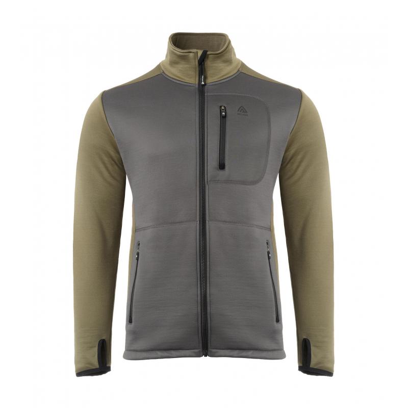 WoolShell Jacket er en jakke med høy hals og glidelås åpning i front. Den er laget i vårt WoolShell stoff med god stretch, som er behagelig å ha på seg. Ullstoffet er strikket og børstet, med et ekstra lag utenpå som beskytter litt mer mot vær og vind, samtidig som det gir økt slitestyrke. Det er tre gode lommer med glidelås, to i sidene og en på brystet. Øverst på venstre side finner du en liten Aclima logo og nederst på armene har vi laget tommelgrep som holder jakka på plass, varmer og hindrer glippe med kald luft mellom hanske og eventuelt et ekstra ytterplagg. Denne jakka er god som middle layer eller alene uten forterkningsplagg utenpå når været er middels kaldt.