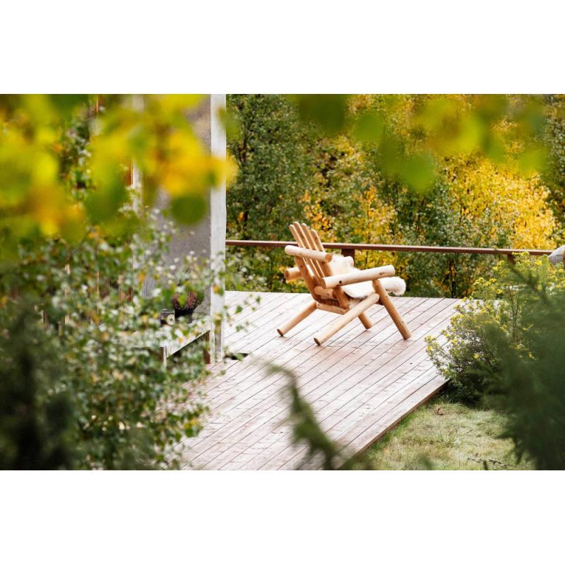 En røff og robust versjon av den klassiske adirondack-stolen. Setet er formet slik at du du sitter bedre enn du nok har gjort i lignende rundtstokk møbler. Flott utseende og ypperlig komfort gjør denne stolen et “must” på uteplassen din.