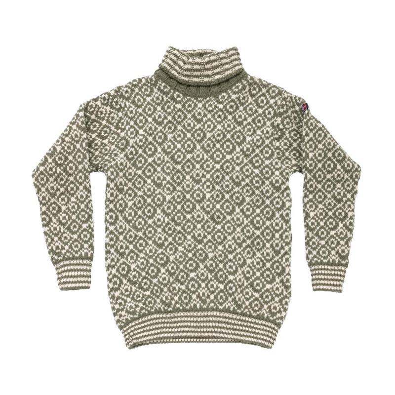 Den høyhalsede, supertykke Svalbardgenseren er laget for å se autentisk «håndlaget» ut og har et tofarget mønster, slik at de små trådrestene blir værende på innsiden av genseren, noe som gir ekstra isolasjon. Den italienske designeren Olmes Caretti ble inspirert av tradisjonelle norske strikkeplagg, men avslører en hemmelighet bak den knallrøde fargen: «Jeg vokste opp rett ved siden av Ferrari-fabrikken.»100 % ren ny ull fra norsk sau.Genserne med glidelås i halsen har en beskyttelse øverst for å hindre at glidelåsen gnager mot hake og kinn.Strikket som en tofarget hel jacquard. Behagelig ribbestrikket erme- og kroppskant.