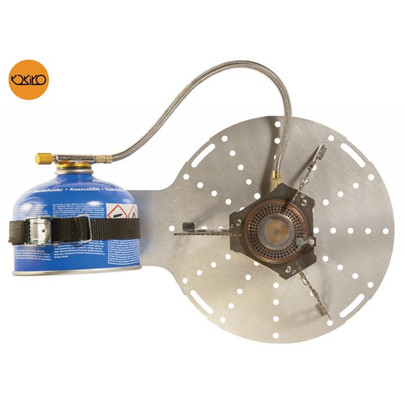Platen leveres med metalltråd for festing av kokeapparatet og spenne for feste av gassbeholder/drivstofflaske.