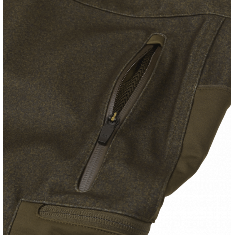 Mountain Hunter Hybrid-buksen er beregnet på aktiv jakt i ulendt terreng og omskiftelig vær. Buksen er vanntett hele veien bak og fra knærne og ned foran. Lårene og knærne er av vannavvisende og vindtett materiale. Det gjør buksen perfekt til jakt der du stadig er i bevegelse, og der du må regne med både vind og en og annen regnbyge.