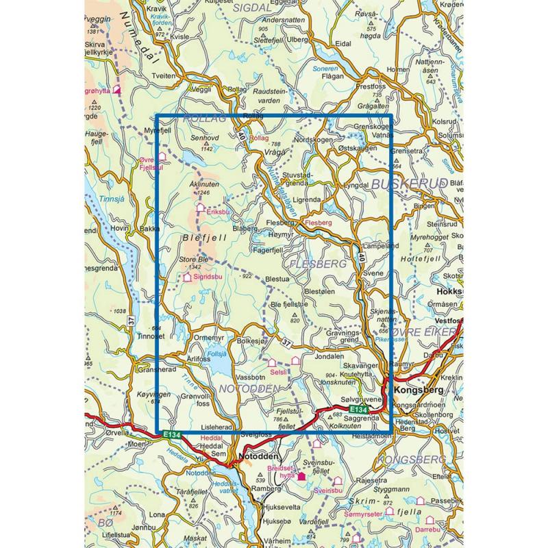 Blefjell har blitt et populært hytte- og turområde både sommer og vinter. Dette turkartet dekker området rundt Blefjell fra Kongsberg i sørvest til Rollag i nord og Follsjå i øst.