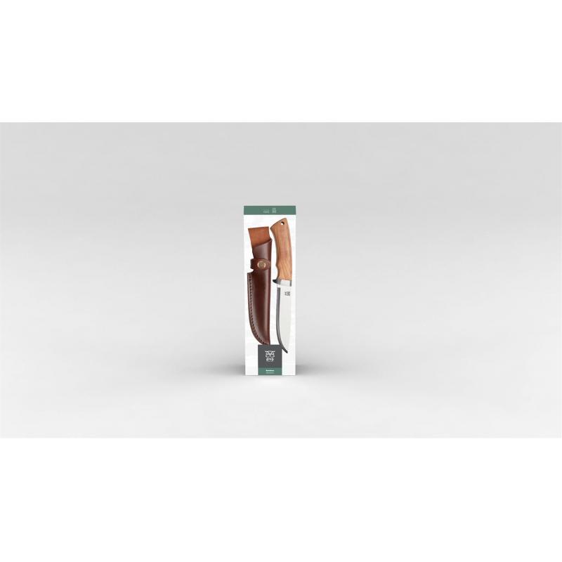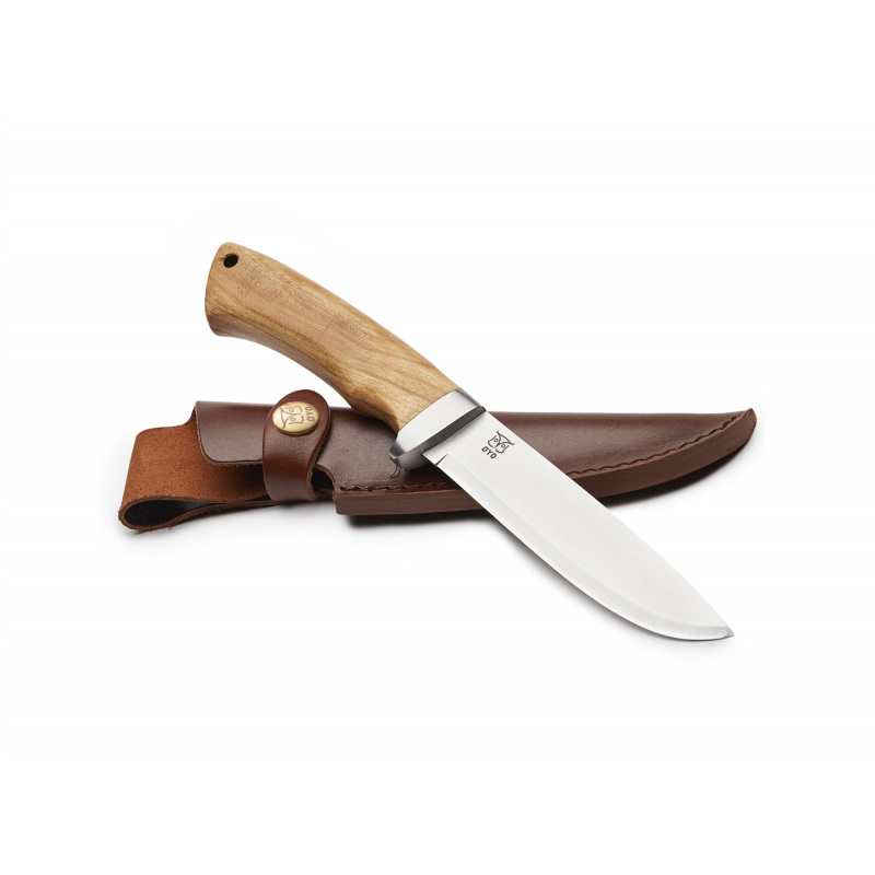 Rondane er en stor kniv. Det lange bladet gjør den til en perfekt universalkniv som kan håndtere alt fra å spikke bålflis til å skjære opp kjøtt, fisk og brød. Det er den perfekte turkameraten for enhver naturopplevelse. Knivbladet har et tradisjonelt konslipt blad. Skaftet med fingerstopper er i oliventre og ligger godt i hånden. Skinnsliren har en knapp for å sikre kniven når man er på tur.