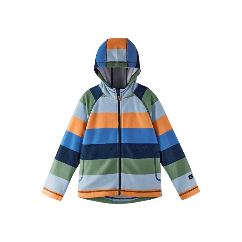 Gjør hver dag mer bærekraftig! Reima-genser til barn med et nytt og særdeles behagelig materiale: omvendt strikket fleece med en myk, børstet bakside. Det er gode nyheter også for miljøet, da materialet inneholder resirkulert polyesterfiber. Glidelås i full lengde med hakebeskyttelse og to sidelommer. Dette flotte mellomlaget til skole og aktiviteter fungerer også som lett beskyttende yttertøy om sommeren.