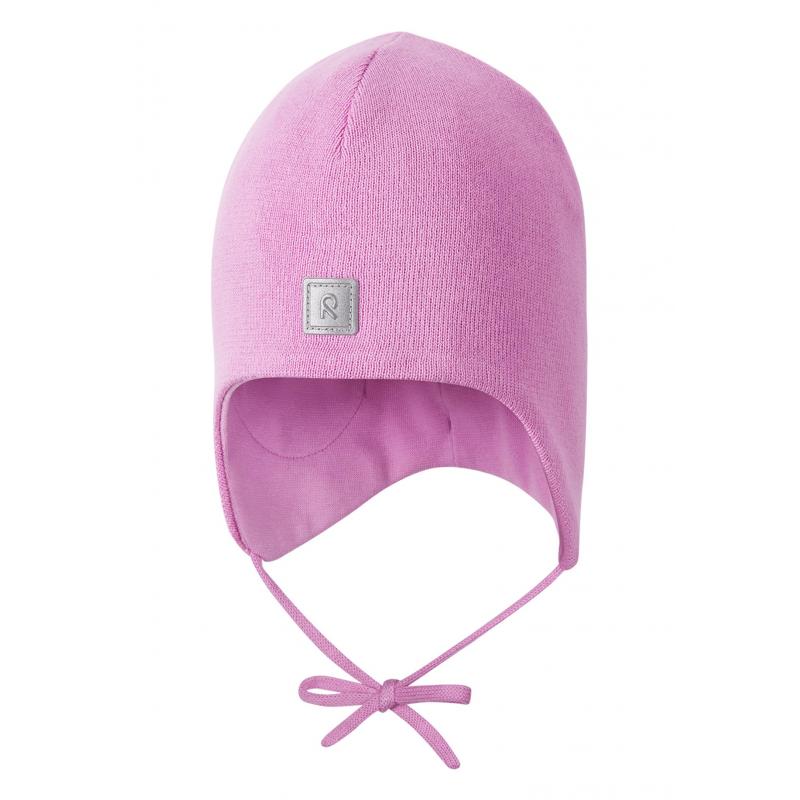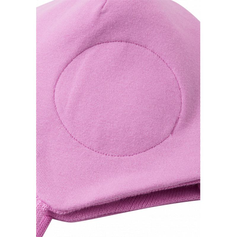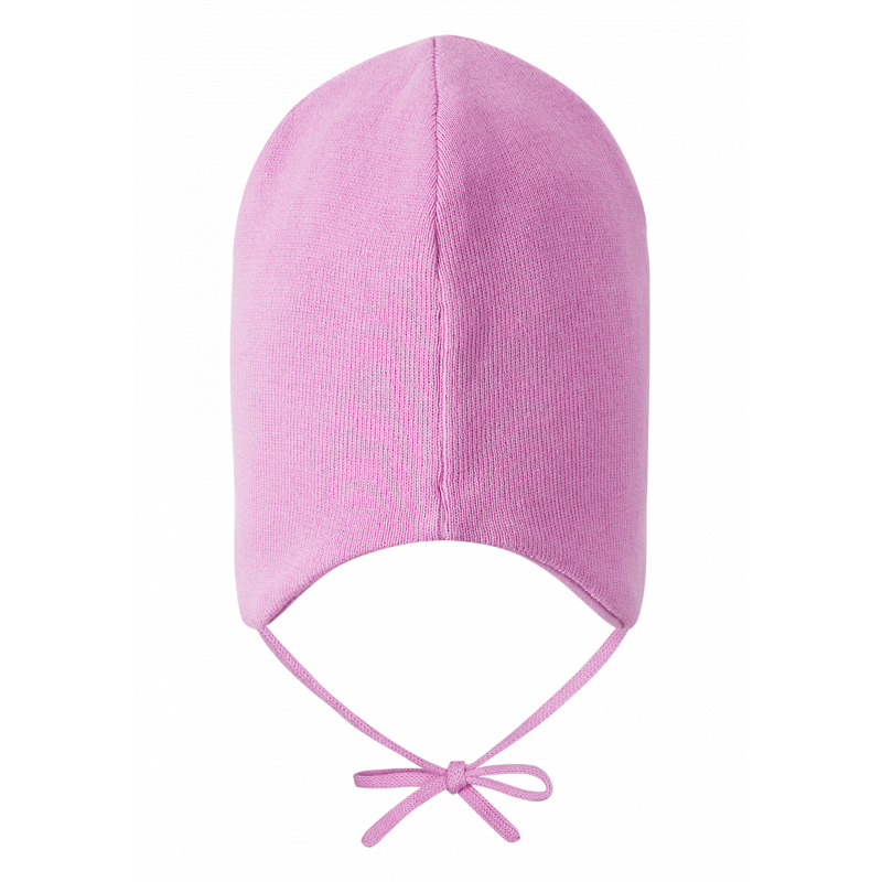 Barnelue i elastisk bomullsstrikk med vindtette ørepartier.