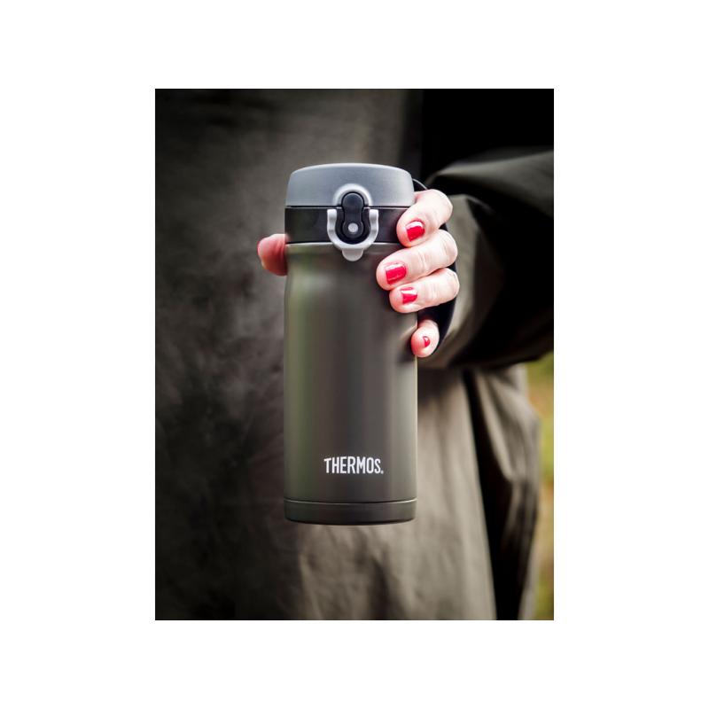 Thermos JMY 350 ml er en smart kombinasjon av en liten termos og termokopp, laget av rustfritt stål med drikkelokk. Kan brukes til både kald og varm drikke.