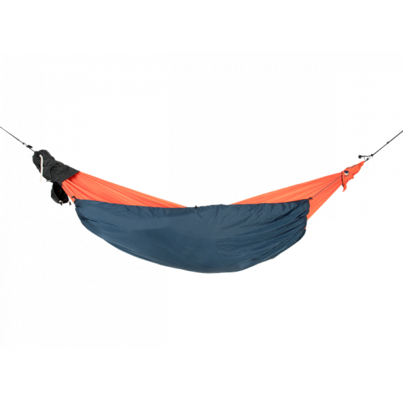 Moonquilt varmedekken fra Ticket To The Moon monteres under hengekøyen og gir ekstra isolasjon ved bruk.
