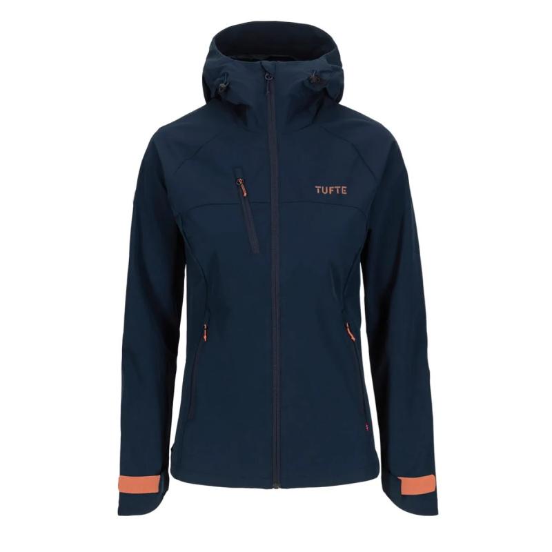 Tuftes softshelljakke til dame er laget i et mykt og komfortabelt materiale, spesielt laget for tur og andre aktiviteter utendørs. Det lette og ventilerende softshellmaterialet er vind- og vannavstøtende og ekstremt komfortabelt å ha på, uansett om du klatrer helt til topps eller tar det litt rolig. Med en romslig hette utstyrt med strammesnorer holder du deg trygg når det regner og blåser. Jakken har tre YKK glidelåslommer; to foran og en på brystet. Strammesnorer inni bunnvidden for enkel justering samt borrelås ved håndleddet for å forhindre varmetap. Materialet rundt albuene er sydd for å være så fleksibelt som mulig når du beveger deg. Plagget er laget med bluesign® sertifisert nylon og resirkulert polyester for å lage praktiske og bærekraftige utendørsplagg, så vennlige mot naturen som mulig.