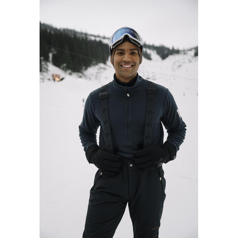 En superpraktisk vinterbukse med avtagbare seler og justerbart liv. Buksen er vattert og laget i et vindtett, vanntett og pustende materiale med tapede sømmer. Den har sidelommer med glidelås, snølås nederst på ben og mulighet for å utvide og stramme benvidde.