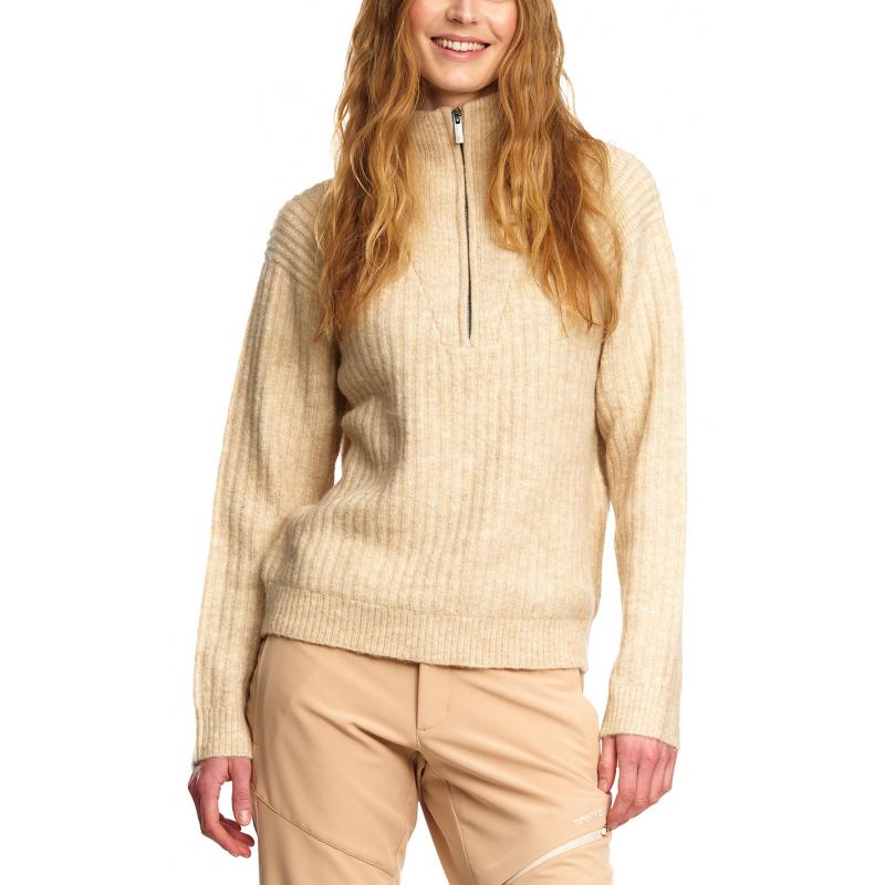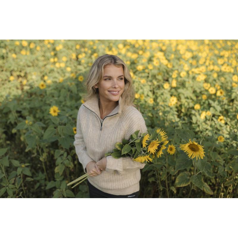 En myk strikkegenser i nydelig ullblanding med halfzip og dobbel rib krage. Genseren er strikket i 2×2 rib og har en romslig fasong. En favoritt under turjakka eller som kosegenser.