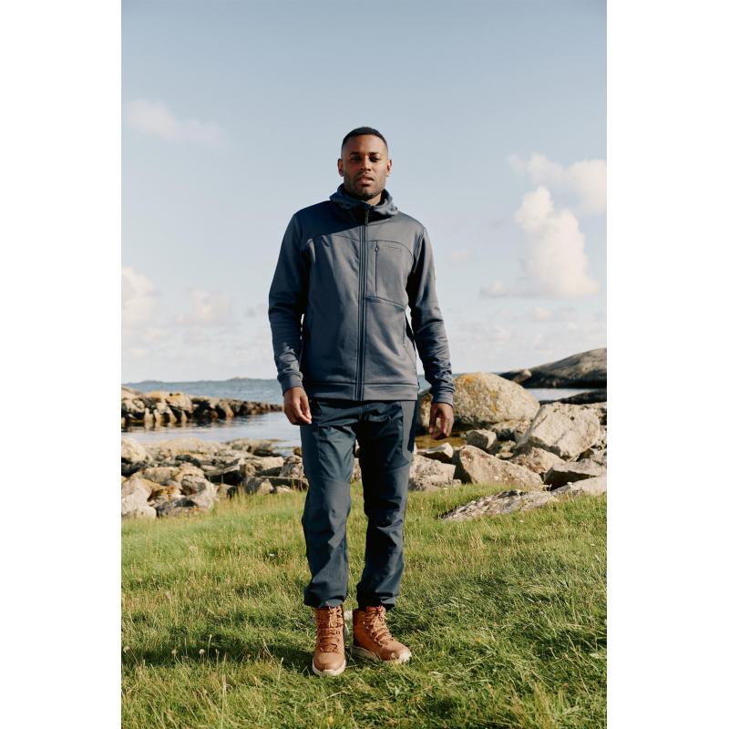 En sporty fleecejakke med hette i mykt og lett powerstretch materiale. Sidelommer og brystlomme med glidelåslukking. Hette med elastisk åpning. En deilig mellomlagsfleece til både korte og lange turer.