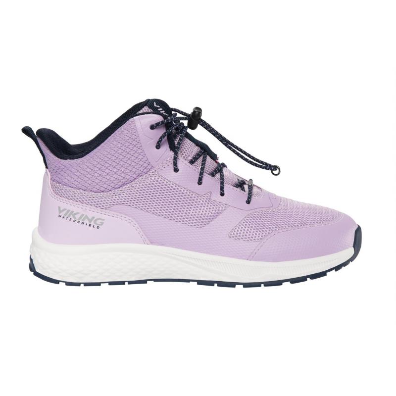 Med Impact Mid WP, den førsteklasses vanntette juniorskoen, kan du utmerke deg i skolegården. Slitesterke forsterkninger og stabil middels høyde kombinert med vanntett Watershield-membran holder føttene tørre og beskyttet. Lett, syntetisk overdel, tykk EVA mellomsåle med demping og perforert gummiyttersåle med godt grep, gjør denne sporty skoen også ekstremt lett. Design som gjør den enkel å ta på og av, drahempe og elastiske lisser gir rask festing for juniorer på farten.